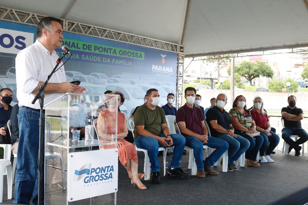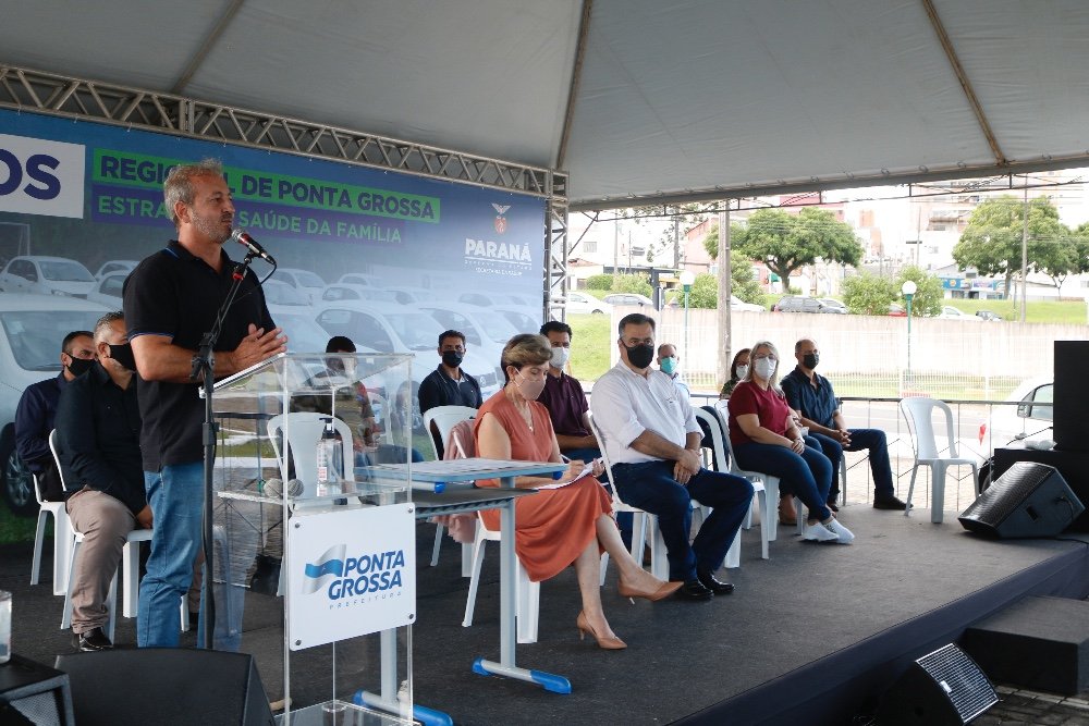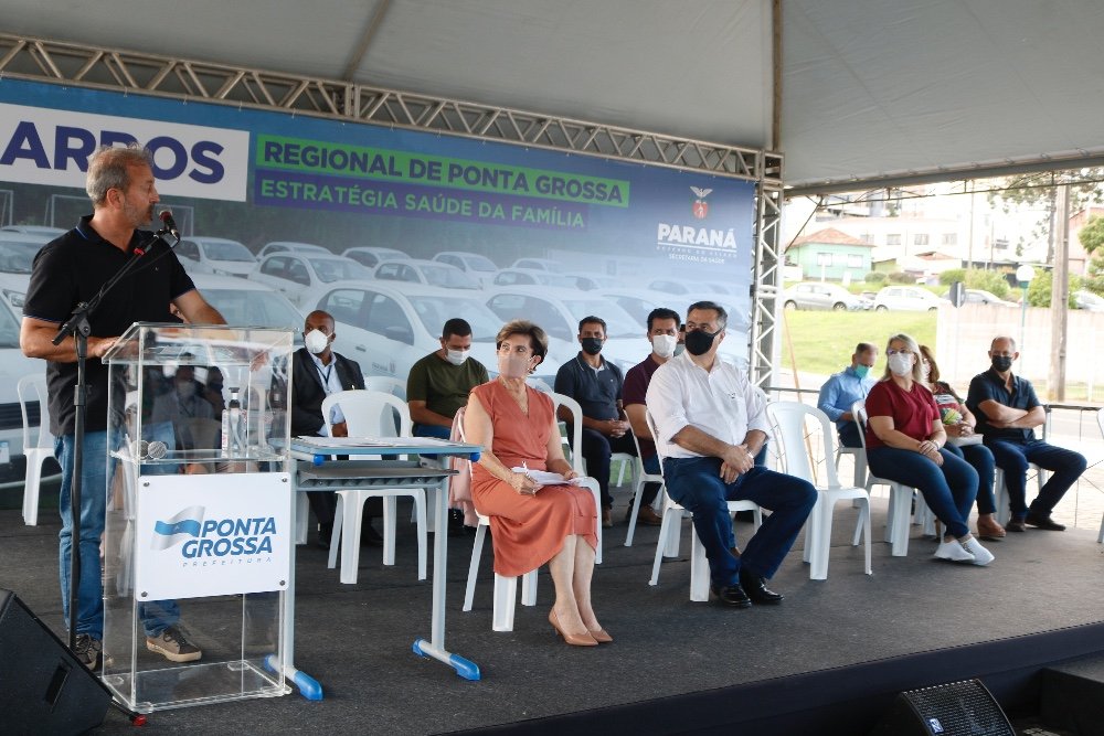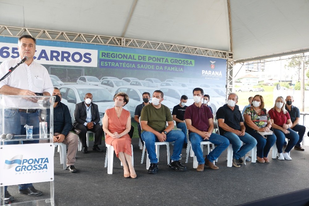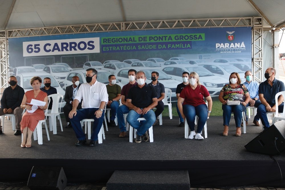 O secretário de Estado da Saúde, Beto Preto realizou a entrega dos 65 carros para os doze municípios da 3ª Regional de Saúde, totalizando R$ 2,2 milhões em investimentos e mais R$ 6,7 milhões para o transporte sanitário, aquisição de equipamentos da atenção primária, além de obras de construção e reforma de Unidades Básicas de saúde na região dos Campos Gerais. “Estamos resgatando esse programa tão importante que é a Saúde da família, com a maior renovação da frota da história”, afirmou. Com esse reforço, o secretário destaca o apoio aos pacientes sequelados de covid-19. “Cada veículo pode fazer em média cinco visitas diárias”, contabiliza.