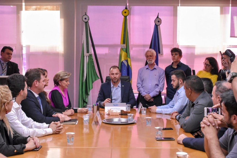 O presidente da Câmara Municipal de Vereadores, Daniel Milla tomou posse como prefeito de Ponta Grossa nesta quinta-feira (04). A solenidade aconteceu no gabinete da Prefeitura, quando a prefeita Elizabeth Schmidt formalizou a transmissão do cargo. Milla será prefeito durante o período de 5 a 22 de agosto, quando Elizabeth retornará do seu período de férias.