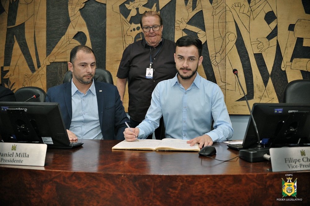 Em cerimônia realizada no início da tarde na câmara, Daniel Milla passou o cargo de presidente para o vereador Filipe Chociai, que vai comandar a câmara municipal por 18 dias.