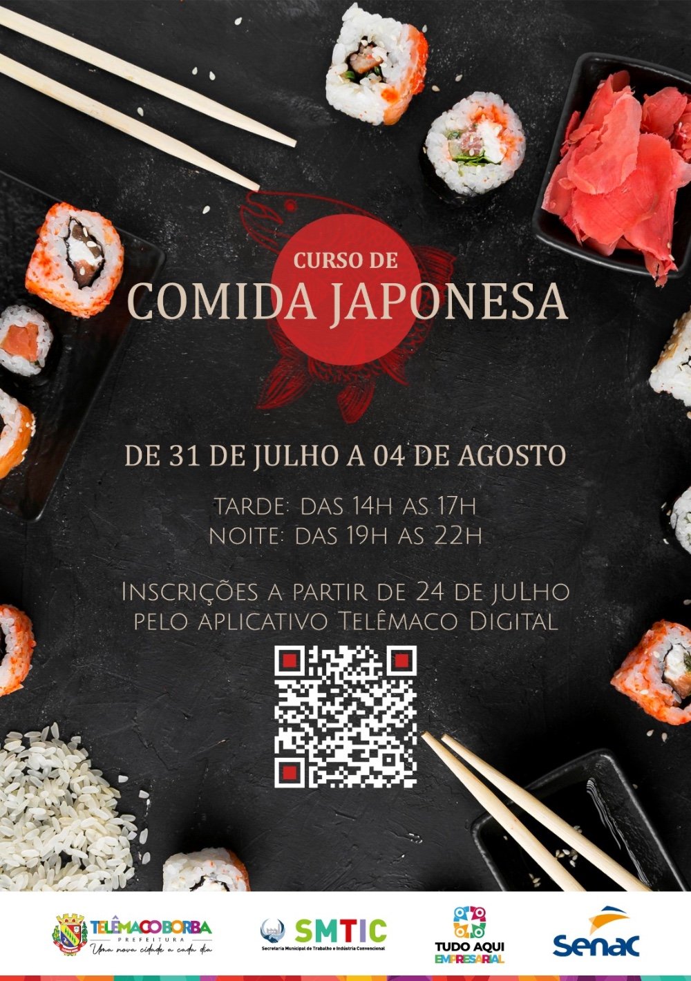 A Prefeitura de Telêmaco Borba, por meio da Secretaria Municipal do Trabalho e Indústria (SMTIC) e do Tudo Aqui Empresarial, está com as inscrições abertas para o curso de “Comida Japonesa”.
