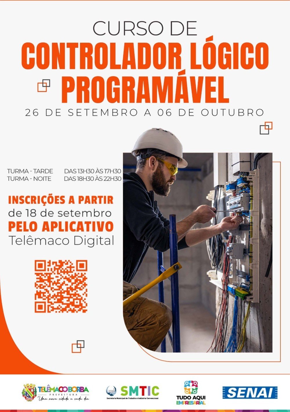 A Prefeitura de Telêmaco Borba, por meio da Secretaria Municipal do Trabalho e Indústria (SMTIC), abre, a partir do dia 18 de setembro (segunda-feira), as inscrições para o curso de Controlador Lógico Programável.