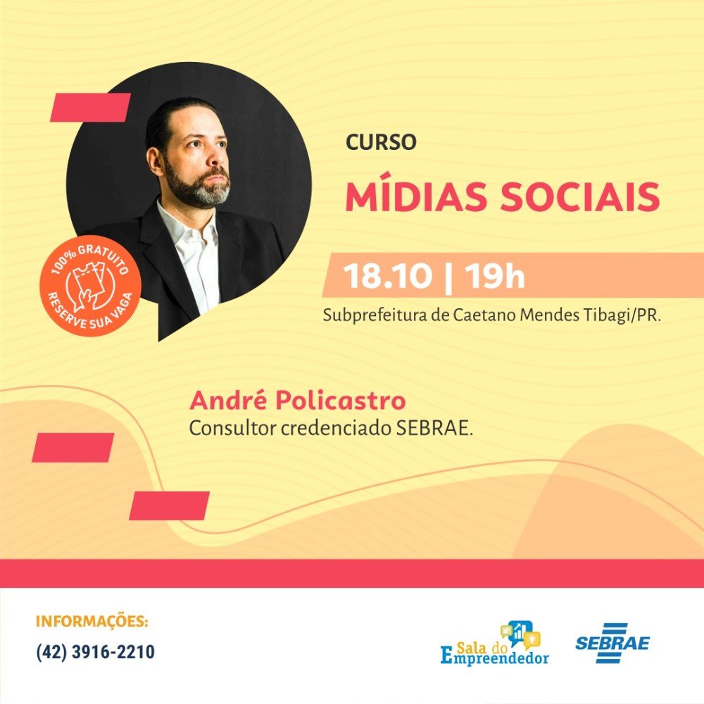 No dia 18 de outubro (próxima quarta-feira), na subprefeitura de Caetano Mendes às 19h, o consultor André Policastro irá trabalhar a importância das mídias sociais para que o negócio dos empreendedores tibagianos alcancem a excelência nos seus negócios.