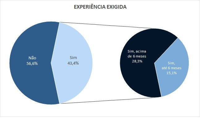 O fim do ano também traz oportunidades para quem ainda não tem experiência profissional. Das vagas temporárias ofertadas, a maioria (56,6%) não exigirá experiência. Nas funções que exigem uma atuação profissional prévia, a maior parte solicita que o candidato tenha trabalhado mais de seis meses na função.