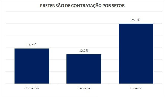 Entre os setores avaliados, o turismo é o mais propenso a contratar, com 25%. No comércio, a projeção de contratação de temporários é de 14,6% e entre as empresas prestadoras de serviços é de 12,2%.