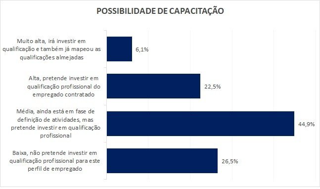 Se a escolaridade não tem se mostrado uma exigência fundamental é porque as possibilidades de capacitação dos temporários é bastante alta: 73,5% das empresas têm a intenção de qualificar os novos trabalhadores, seja em treinamentos próprios ou em instituições profissionalizantes. Apenas 26,5% não pretendem investir na qualificação profissional para este perfil de empregado.